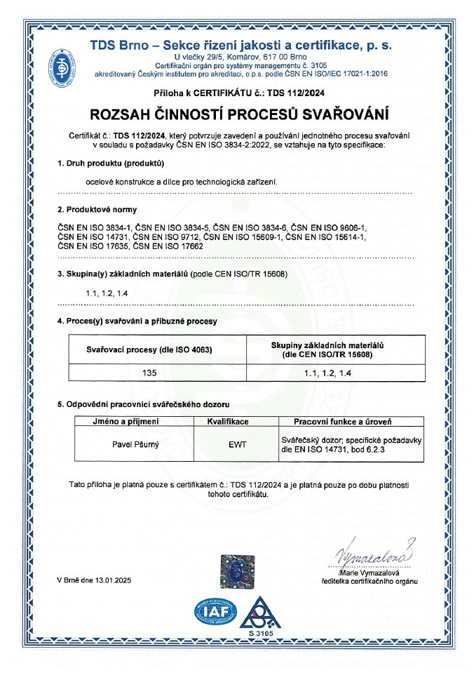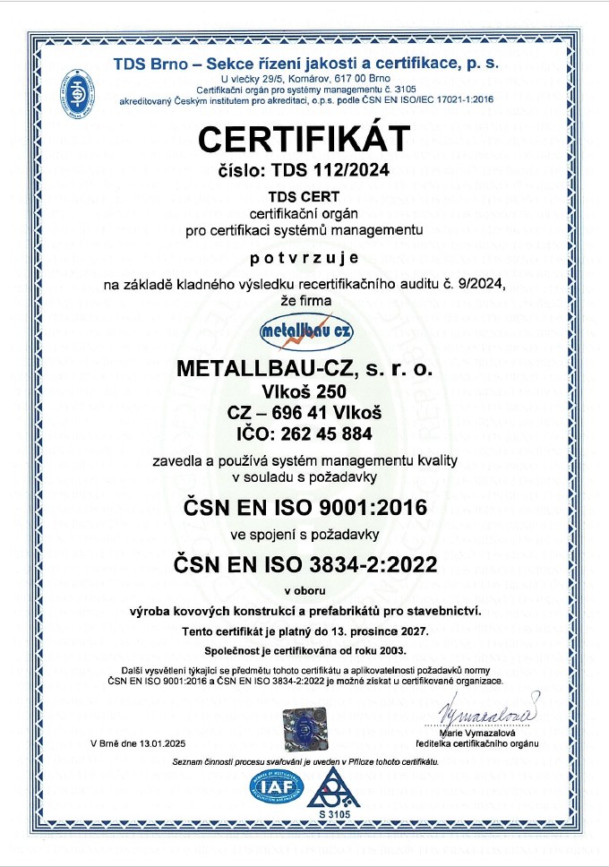 Firma Metallbau CZ s. r. o. má tyto certifikáty